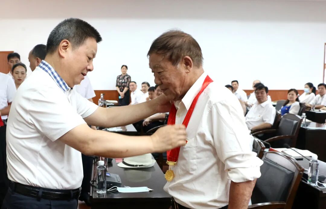 為老黨員代表頒發(fā)“光榮在黨50年”紀念章